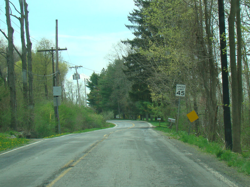 Hoags Corner Road begins at Pleasant Ridge Road (CR 21) in Wingdale and runs south as a two-lane undivided road.