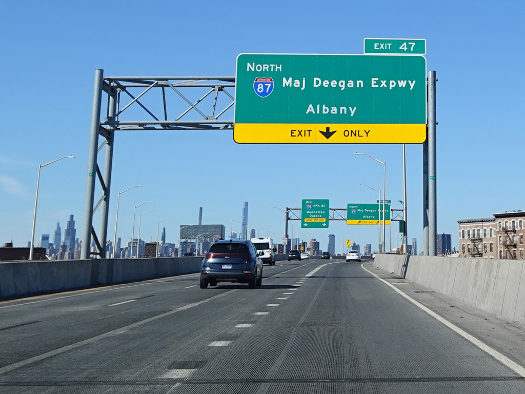Exit 47 is for the Major Deegan Expressway (I-87). The Bruckner Expressway ends here. Bear left to stay on I-278 across the RFK Bridge.