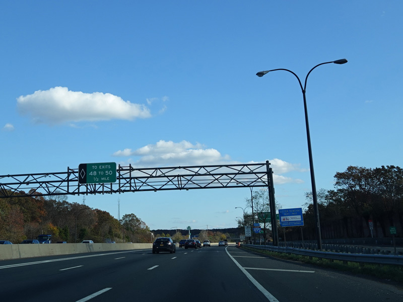 There is a weigh station for trucks between exits 46 and 48. Exit 48 is for Round Swamp Road (CR 110).