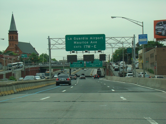 From this point east, I-495 is called the Long Island Expressway. Exits 17W-E are for the Brooklyn-Queens Expressway (I-278) and Maurice Avenue.