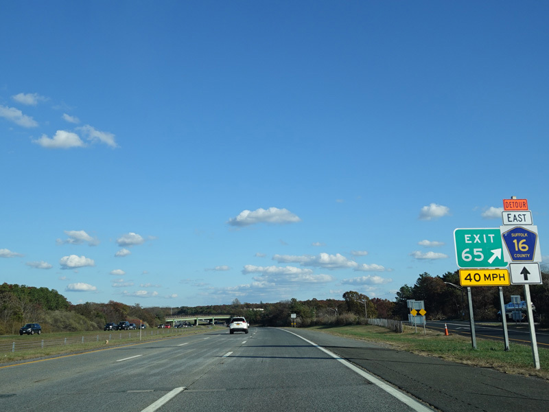 Exit 71 is for Nugent Drive (NY 24/CR 94), which is a slow and indirect route to the South Fork.