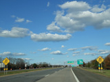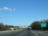 The expressway narrows down to one lane and merges into Old Country Road (CR 58).