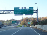 The ramp for exits 27N-S when travelling west splits. Bear right to go north on the Clearview Expressway (I-295) or bear left to go south.