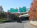 A long ramp leads from exit 38 of the expressway to the Northern Parkway. There is a turnaround that all trucks are required to use, since they are not allowed on the parkway.