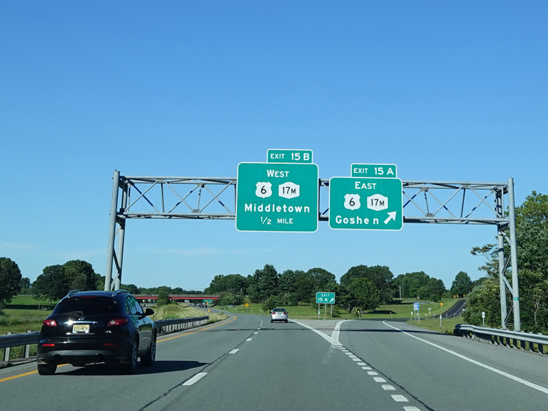 Exits 19A-B are for the Quickway (NY 17/Future I-86). There are I-86 shields on the signs here, even though the designation has not been applied yet.