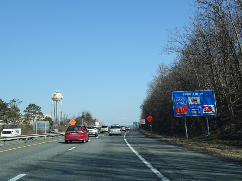Exit 36A is for the New York Thruway (I-87). Exit 36B is for Union Avenue (NY 300).