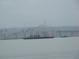 This picture shows the Tappan Zee Bridge as observed from Piermont shortly after the new bridge opened to traffic. The old bridge had been partially demolished at the time.