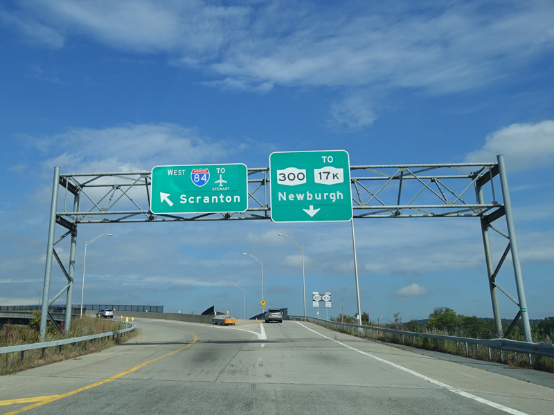 The ramp for exit 17 splits after the tollbooth. Bear right to go east on I-84 or bear left to go west. Continue straight ahead for Union Avenue (NY 300) and NY 17K.