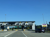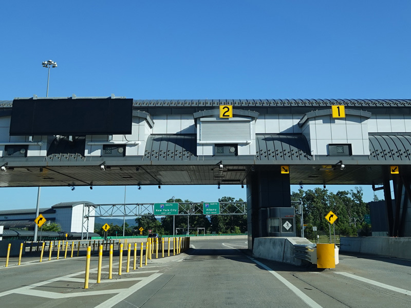 Motorists getting on the Thruway at exit 19 pass through this tollbooth. Then, the ramp splits. Bear right to go north or left to go south.
