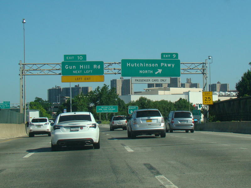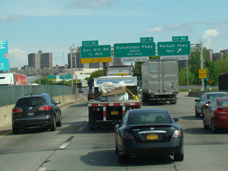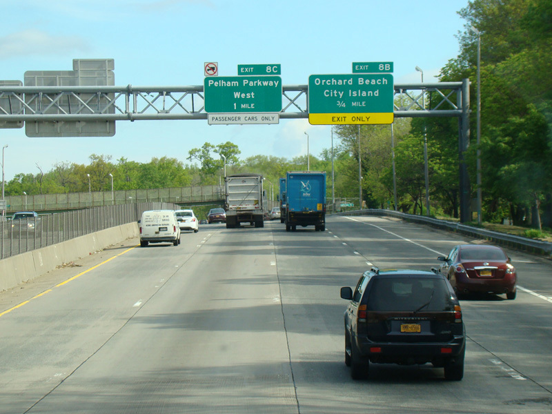 These pictures show I-95 in the Bronx as it appeared before construction work that combined exits 8B-C into a single exit 8. All of the signs have been replaced.