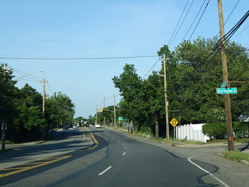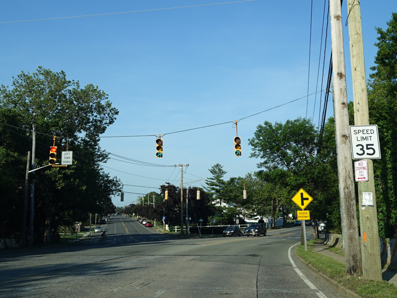 There is a traffic light at Merrick Avenue (CR 4). Turn left to go north or right to go south.