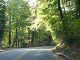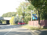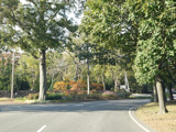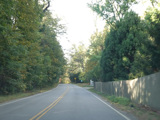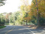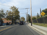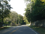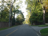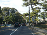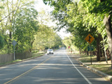 Merrick Avenue runs north along the western boundary of Eisenhower Park. There is a parallel bike path along the right side of the road.