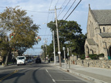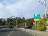 Charles Lindbergh Boulevard, which leads to the Nassau Coliseum, Nassau Community College, and Museum Row, begins on the left here.