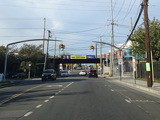 Merrick Avenue intersects Sunrise Highway (NY 27) at a traffic light.