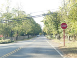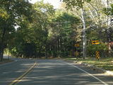 Post Road continues north. CR 4 ends at a rather confusing intersection. The road straight ahead, an unnumbered county road, is called Wheatley Road. The road to the left, a town road that runs back south to the service roads of the Long Island Expressway (I-495), is also called Wheatley Road. As if this wasn't sufficiently confusing, a small green sign says that the road straight ahead is called Wheatley Post Road, which is not correct.
