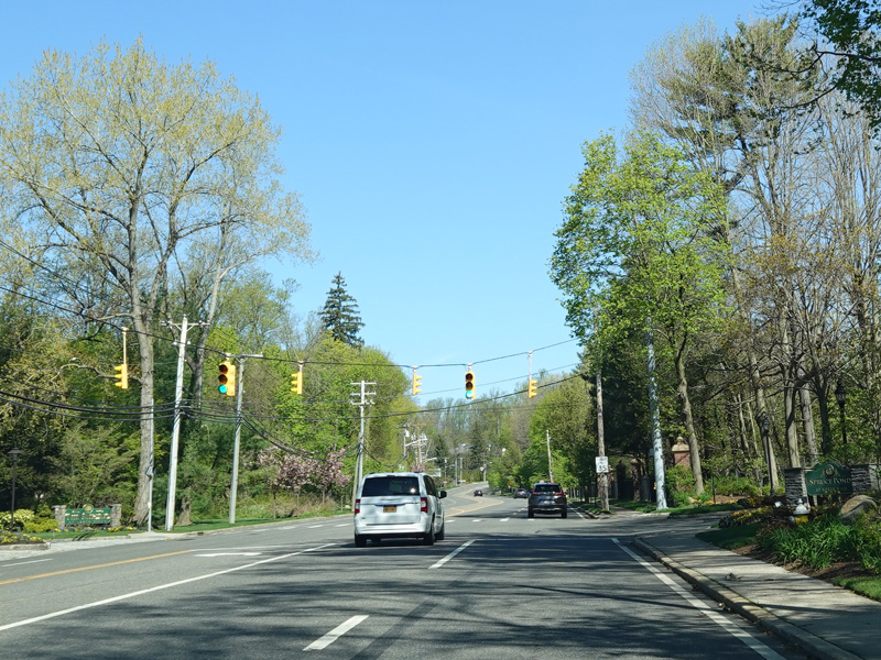 There is a traffic light at Jericho Turnpike (NY 25). Turn right to go east or left to go west.