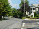 Amboy Road begins at a dead end by the Arthur Kill and runs east through Tottenville as a two-lane undivided road.