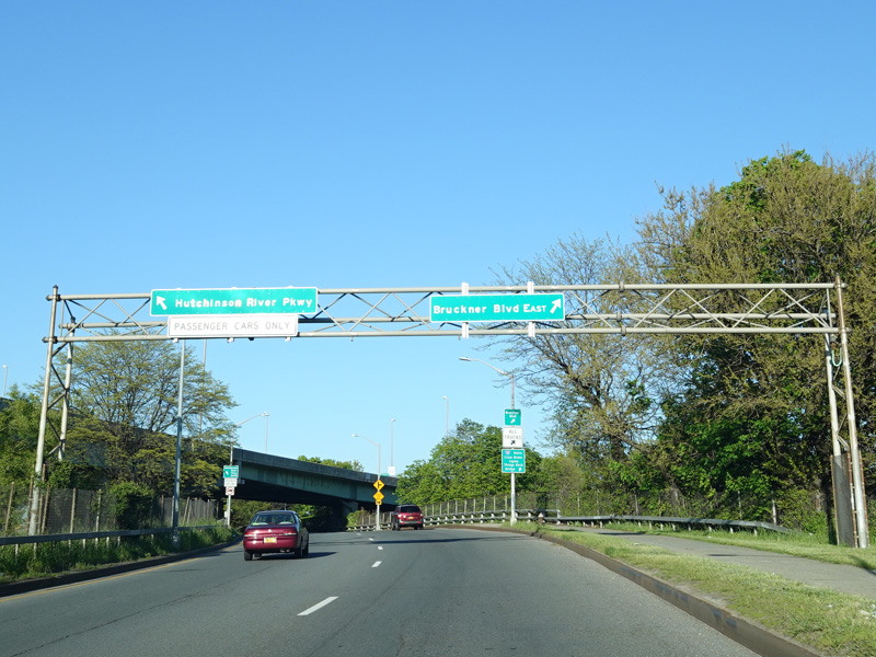 The roadway splits again. Bear left for the Hutchinson Parkway or right to stay on Bruckner Boulevard.