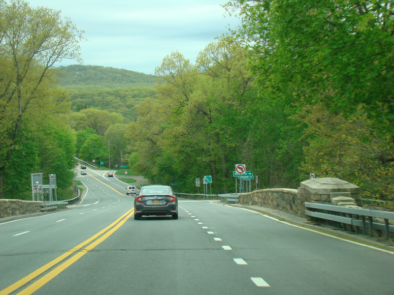The parkway ends at a traffic light at US 6/US 9/US 202. Continue straight onto the Croton Expressway to go south/east. Turn right to go north/west toward the Bear Mountain Bridge (US 6/US 202).