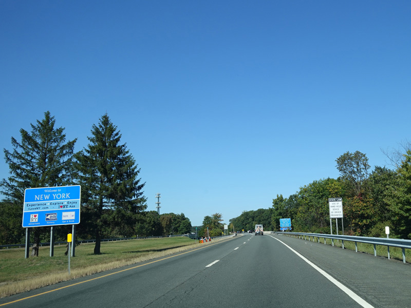 Welcome to New York! The section of the Garden State Parkway in New York is considered to be an extension of the New York Thruway, so there is Thruway signage here.