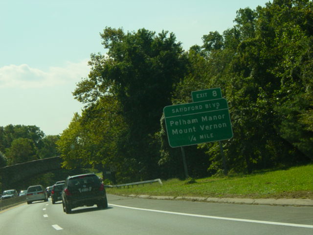 These pictures show the Hutchinson Parkway southbound in the Bronx as it appeared before the exits were renumbered to use a milepost system.