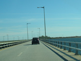 A long bridge carries the Robert Moses Causeway across Great South Bay to Captree Island. It is one of the longest bridges in the New York metropolitan area.