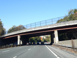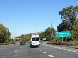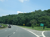 The northbound and southbound lanes split and run on opposite sides of the Grassy Sprain Reservoir.