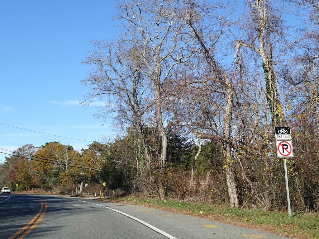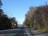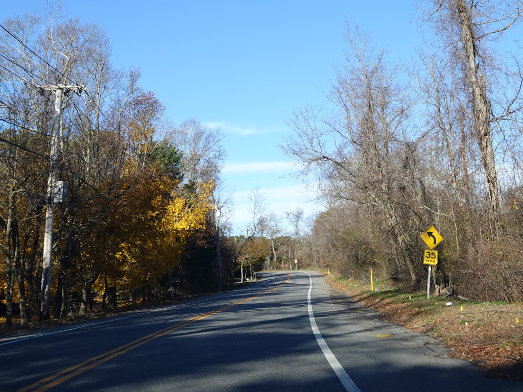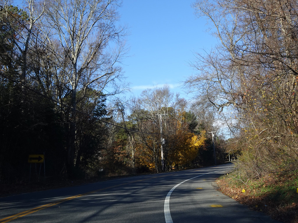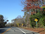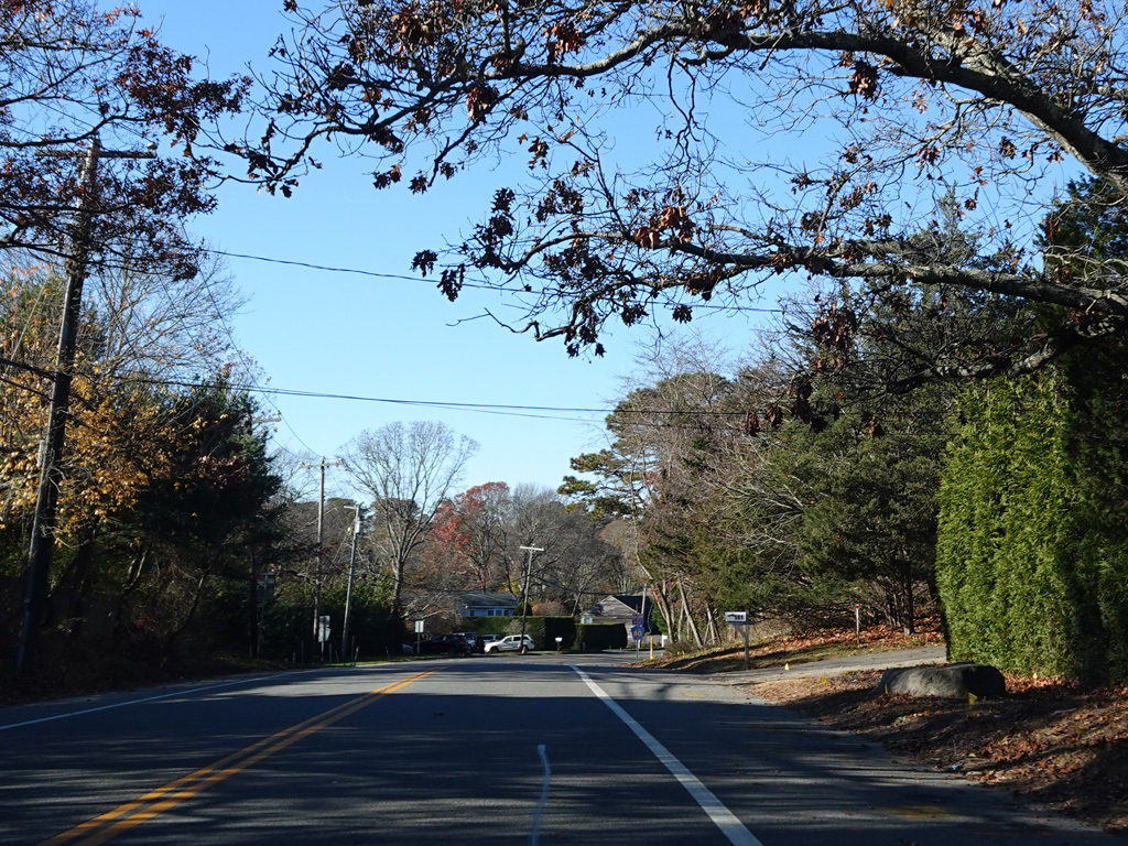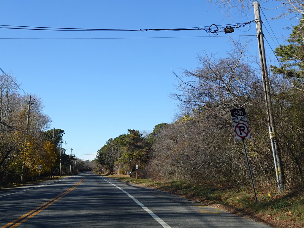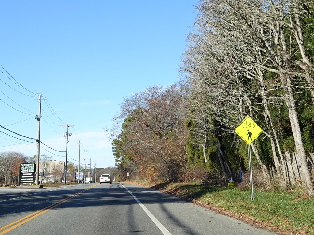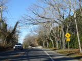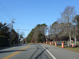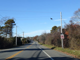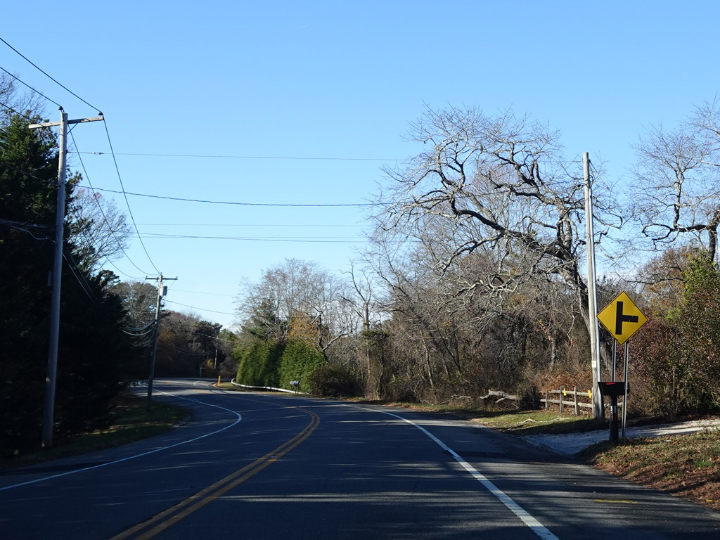 Montauk Highway runs west as a two-lane undivided road. The Shinnecock Nation is on the left here.