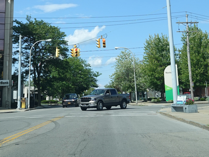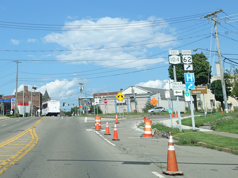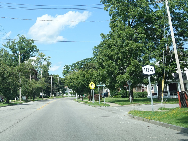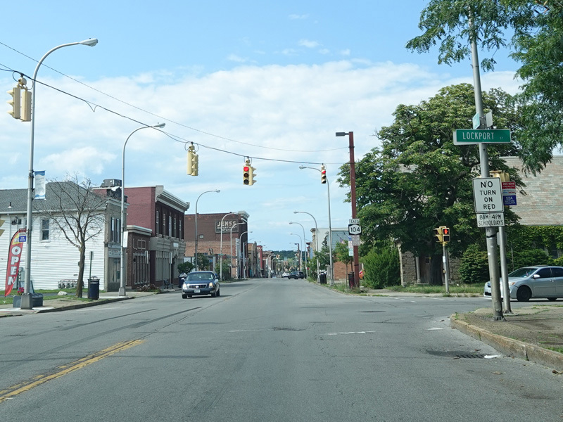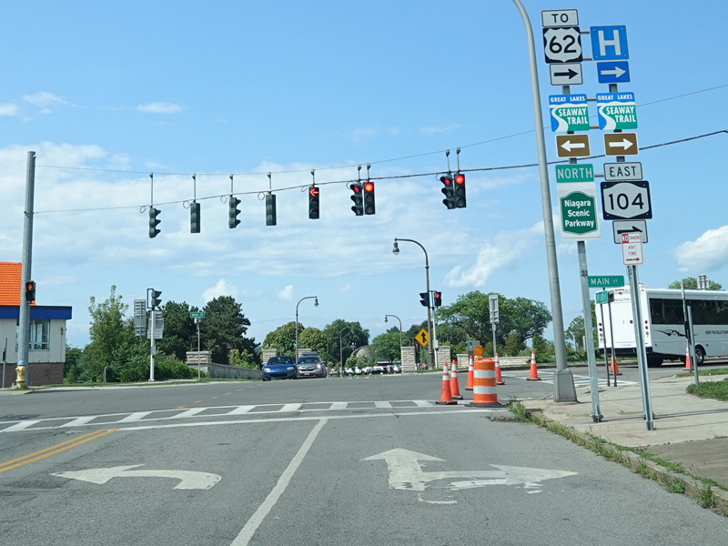 First Street in Niagara Falls become NY 104 upon crossing Niagara Street (NY 384).