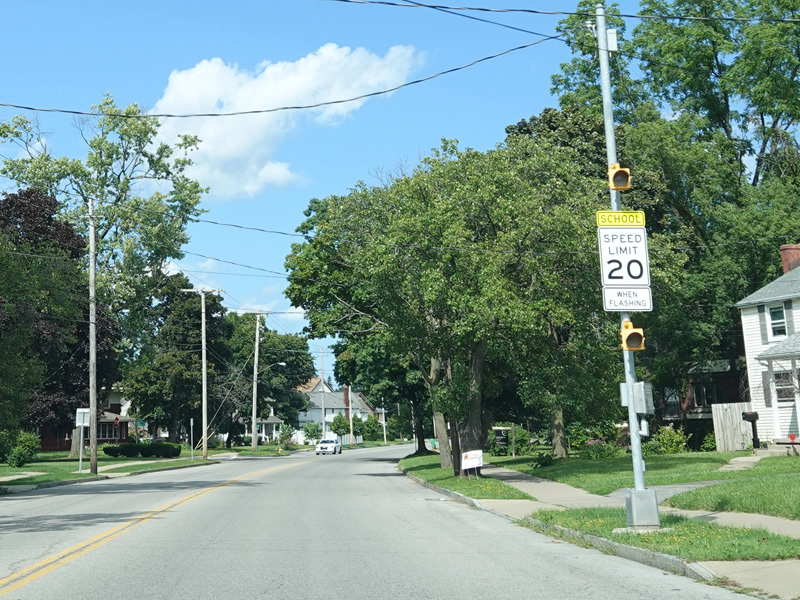 Pine Avenue (Business US 62) begins on the right at a traffic light.