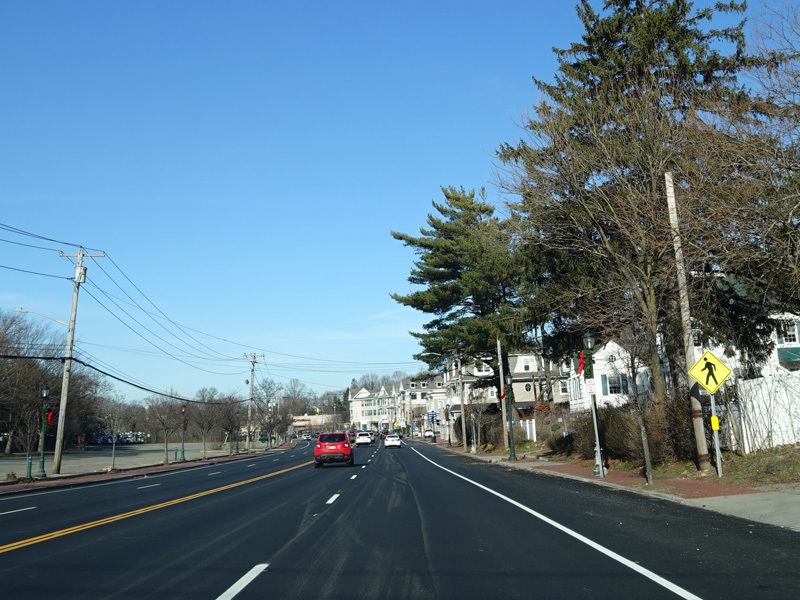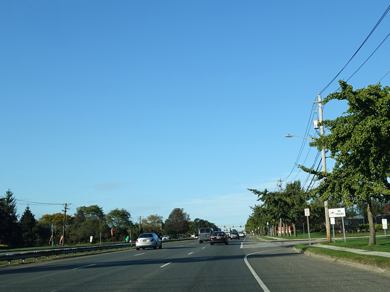 New York Avenue narrows down to two lanes and continues north to Huntington.