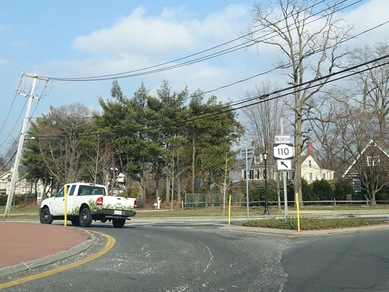 Oops! NY 110 is erroneously signed as US 110 here. Broad Hollow Road continues north through Farmingdale.