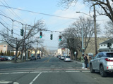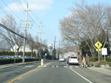 There is a traffic light at Main Street (NY 25A). Turn right to go east or left to go west.
