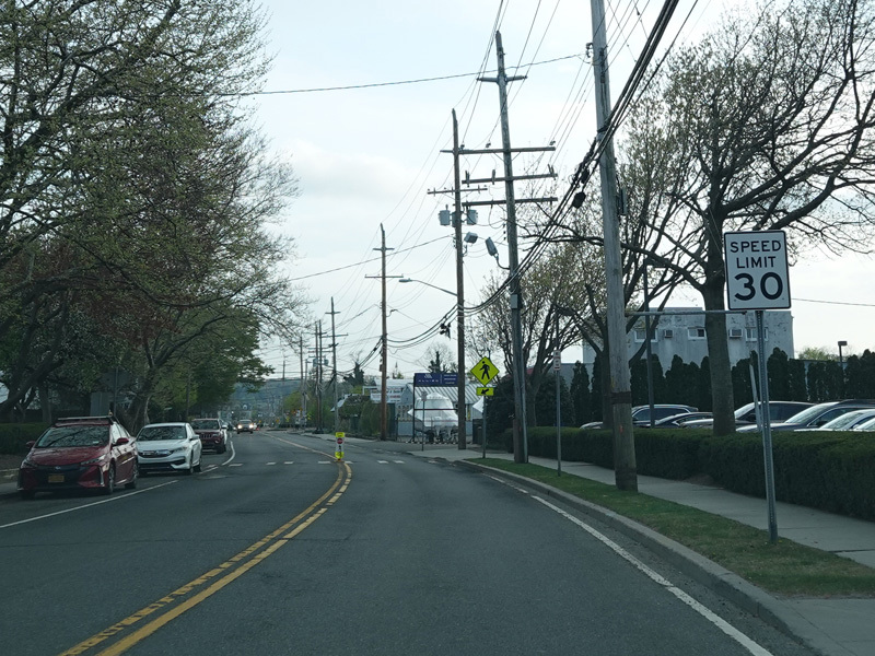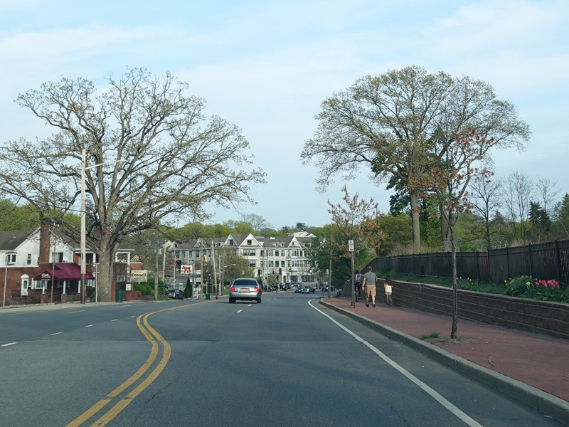 New York Avenue is formed by the merger of East Shore Road and Youngs Hill Road in Huntington. It runs south as a two-lane undivided road.