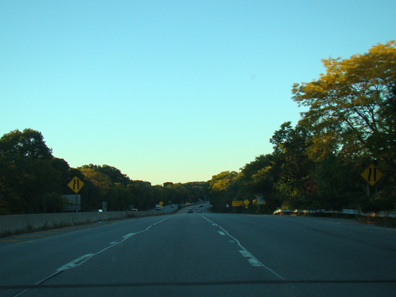 Exits 14E-W are for Jericho Turnpike (NY 25). After exit 14E, the expressway narrows down to one lane and becomes the exit ramp for exit 14W.