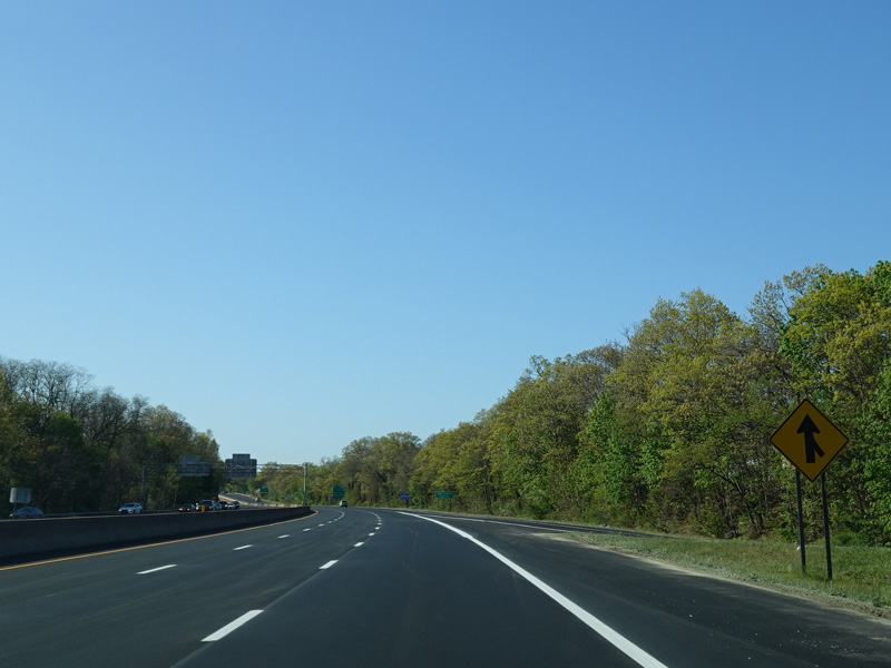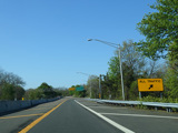 Exits 1W-E are for Merrick Road (CR 27). The expressway ends here and all vehicles that do not use exit 1W are forced onto the ramp for exit 1E. The road was supposed to continue, curving to the southwest to end at the Wantagh Parkway and provide access to Jones Beach. Based on the way that the pavement and divider end at a fence, it is clear that this road was not supposed to end here.