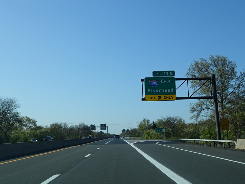 Exits 13W-E are for the Long Island Expressway (I-495). Exit 12E is for the Northern Parkway east. Motorists wishing to go west on the parkway must take the expressway and cross over at exit 42.