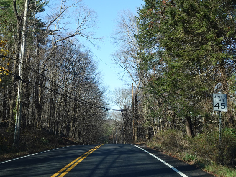 Welcome to Pound Ridge! Westchester Avenue runs north as a two-lane undivided road.