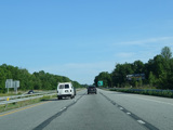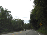 NY 17 runs south as a four-lane undivided road. There is a truck inspection station on the right.