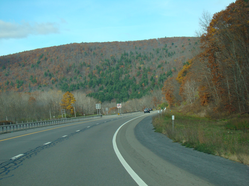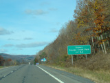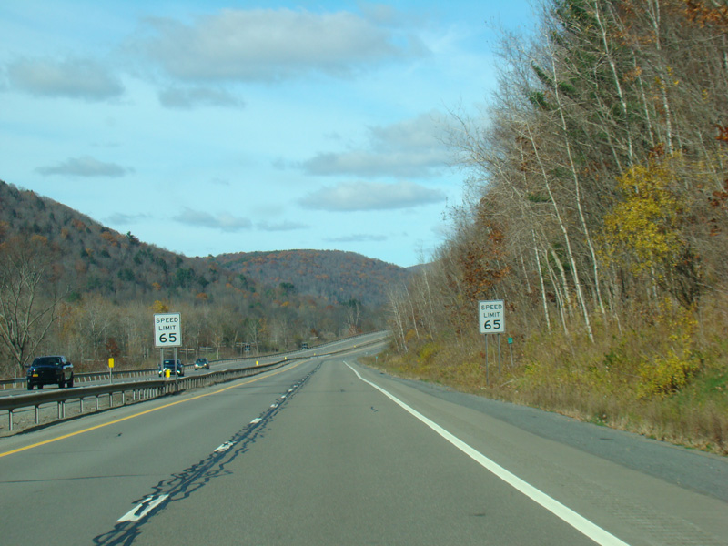 In Hale Eddy, there are some at-grade intersections, including one with a flasher. Silver Lake Road, Rodds Creek Road, and Hungry Hollow Road begin on the right.