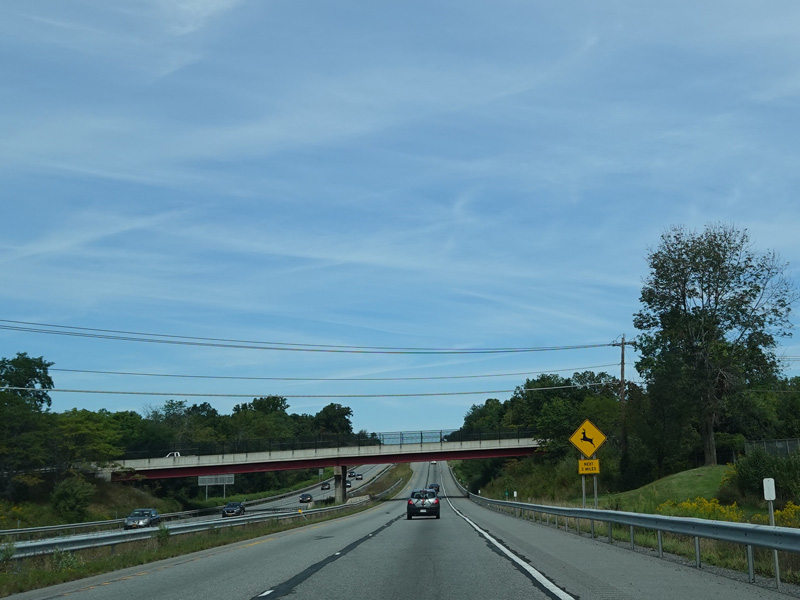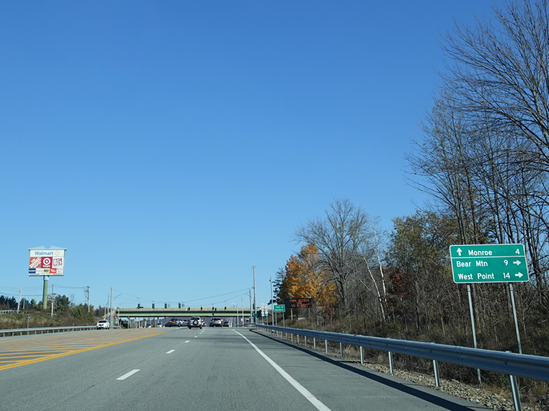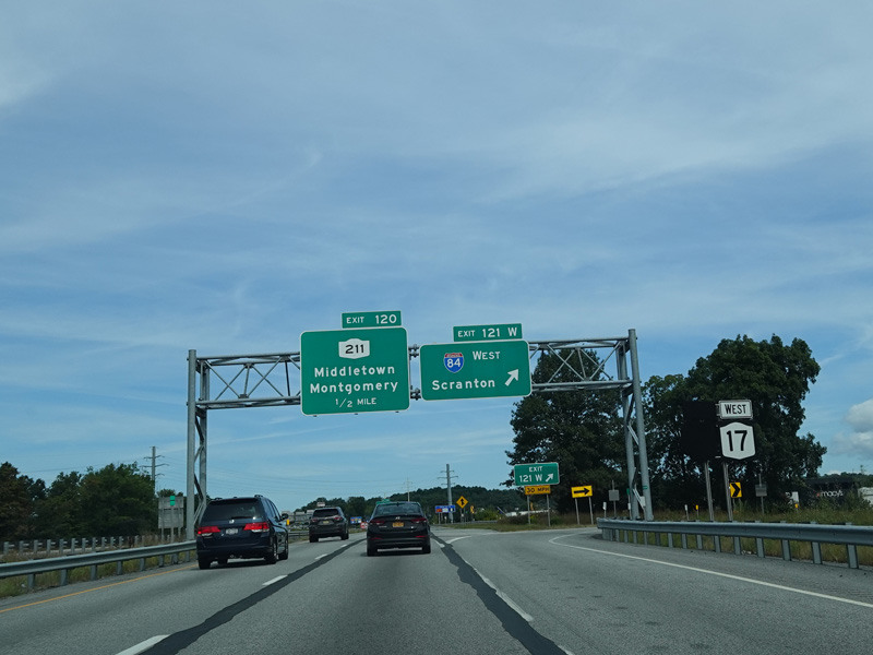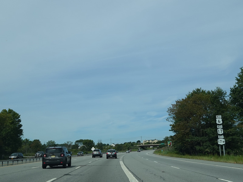 The Quickway takes on the NY 17 designation one exit west of its eastern terminus at the New York Thruway (I-87). US 6 merges in after a short distance. There is a Future I-86 sign to indicate that the Quickway will be redesignated I-86 once it is upgraded to meet interstate standards.