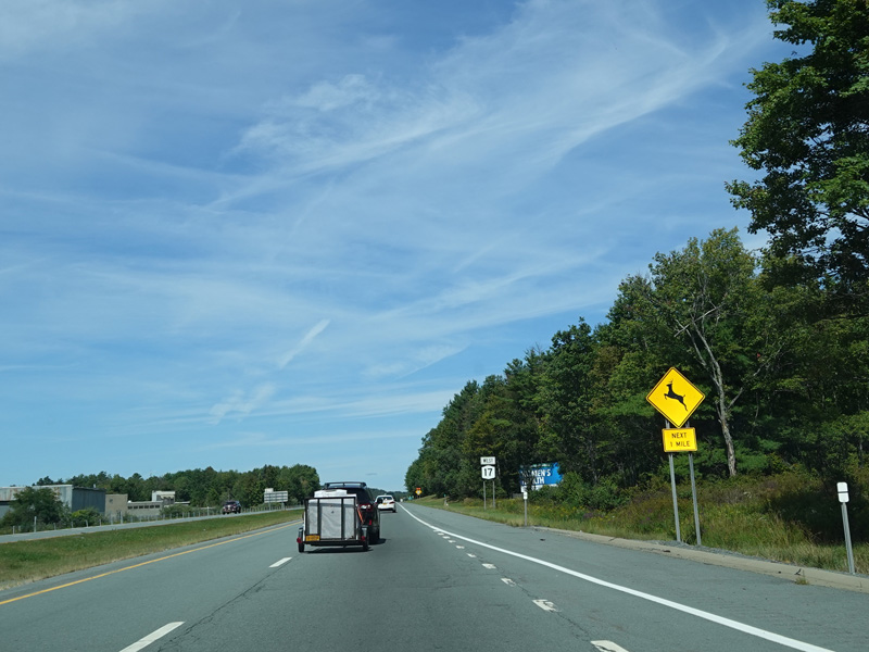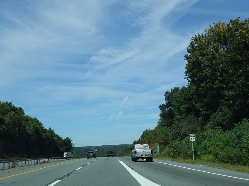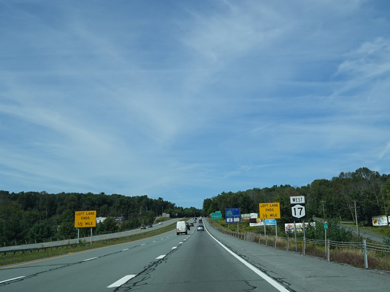 The speed limit drops to 55 MPH in Roscoe. Exit 94 is for NY 206.