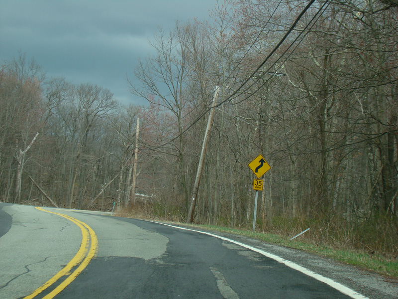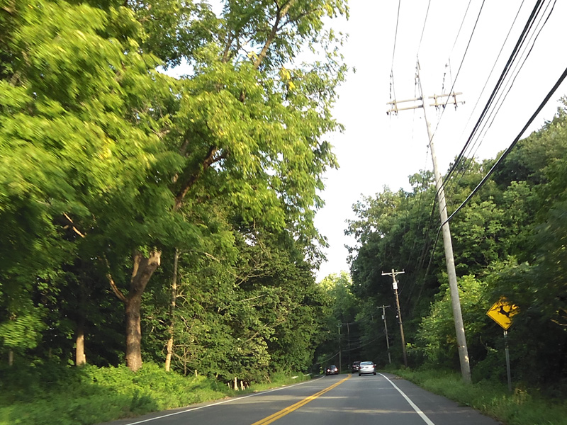 Dutch Hollow Road (CR 5) begins on the left. There is no route signage here.