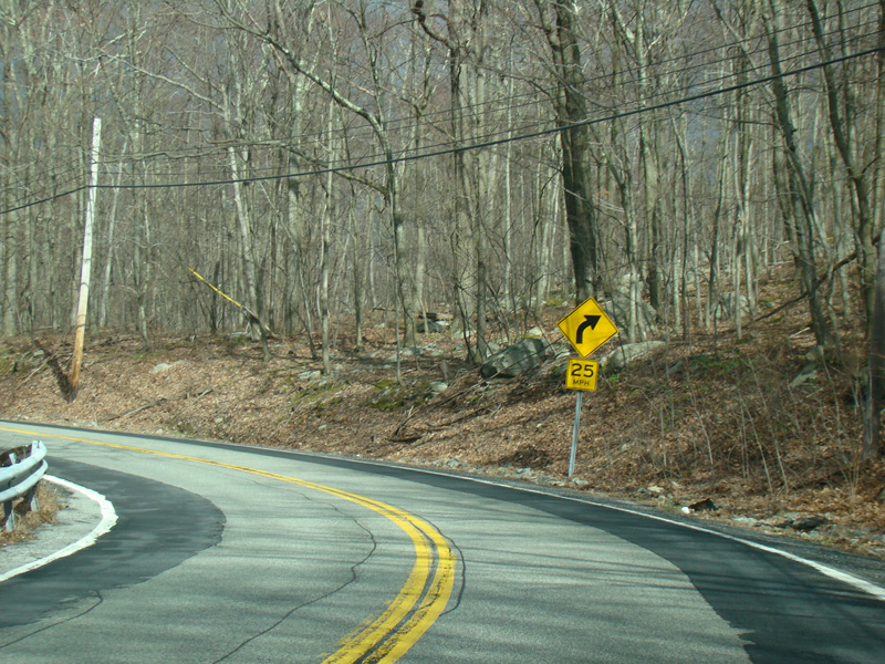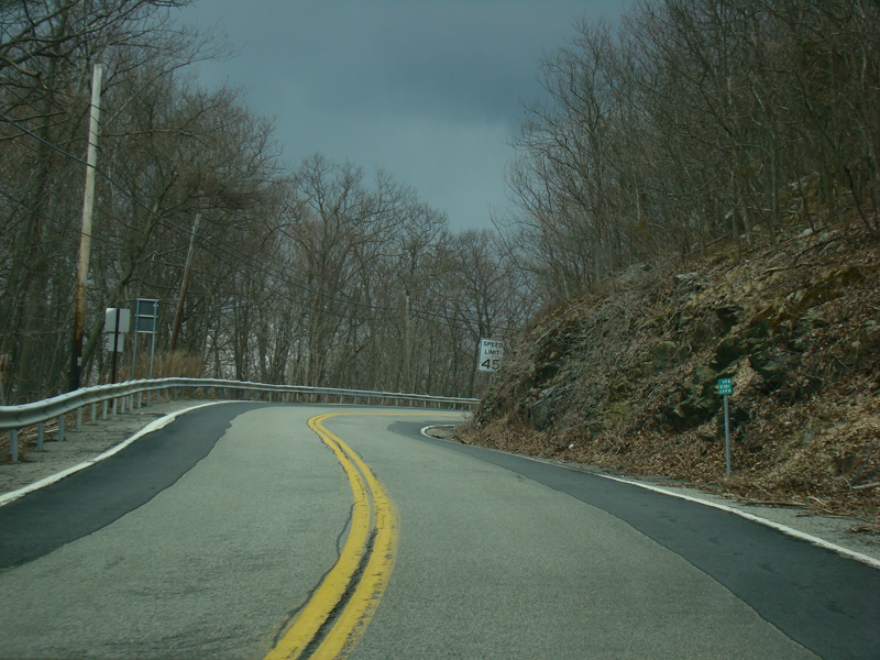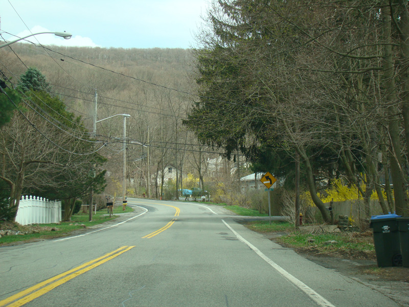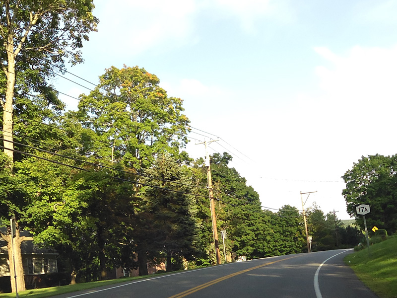 As NY 17A goes downhill, it curves to the north and then back to the south.