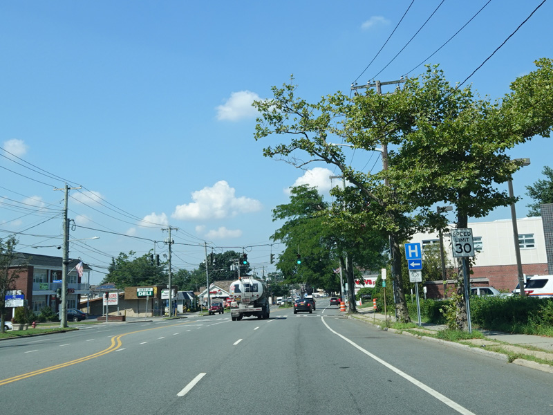 Welcome to Williston Park! Hillside Avenue widens to become a four-lane divided road again.