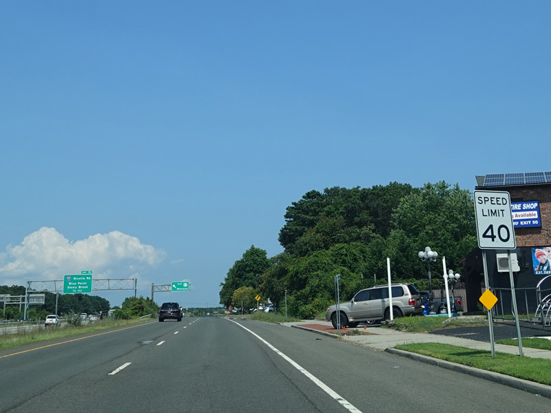 Welcome to North Babylon! The service road narrows down to a single lane, and a second lane merges in on the left from exit 40.