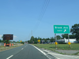 These signs were found on the service road of Sunrise Highway at its interchange with the Southern Parkway. They have all been replaced. The new signage uses brown signs for the direction toward Heckscher State Park.