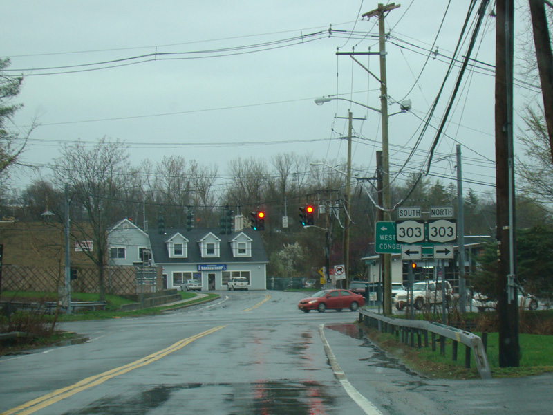 NY 340 ends at a traffic light at NY 303. Turn right to go north or left to go south.