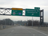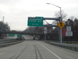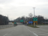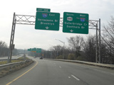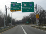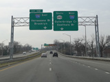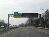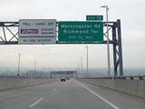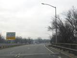 Straight ahead, the Outerbridge Crossing crosses the Arthur Kill to New Jersey. At the state line, NY 440 becomes NJ 440.