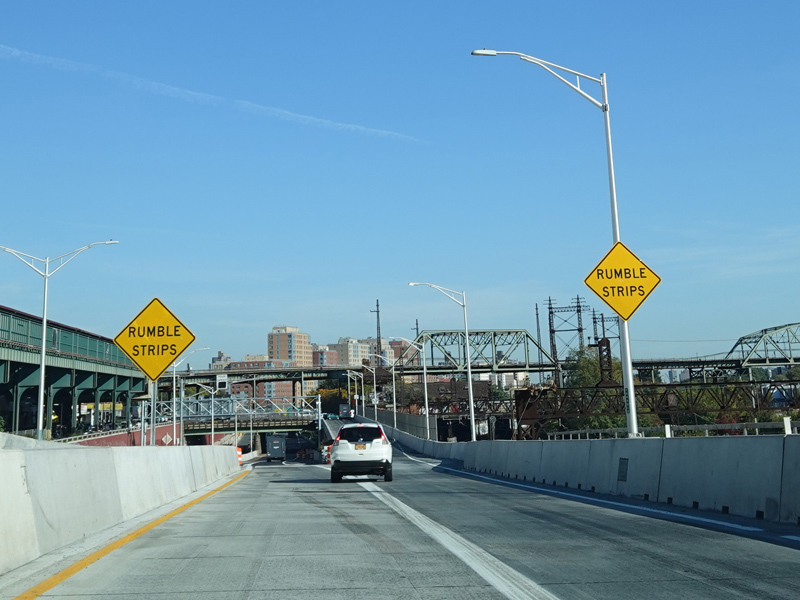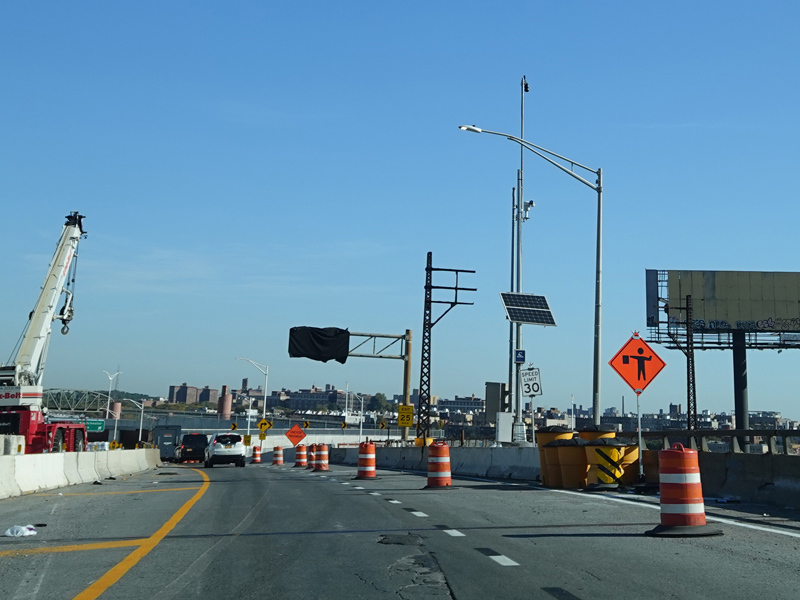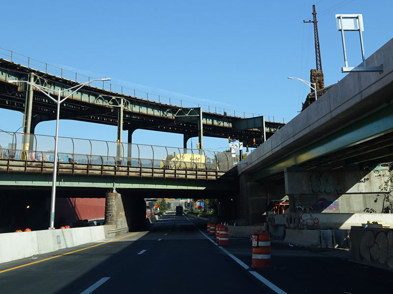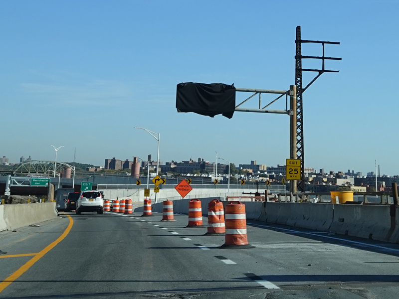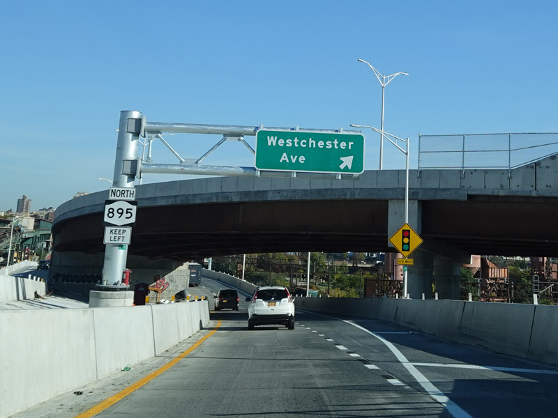 Another year later, the exit for Westchester Avenue was open, and construction was in progress to add an exit for Edgewater Road.